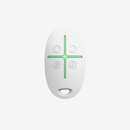 Un mando para controlar los modos de seguridad. Cuenta con un botón de pánico para enviar alarmas a su círculo interno y una compañía de seguridad en caso de problemas.